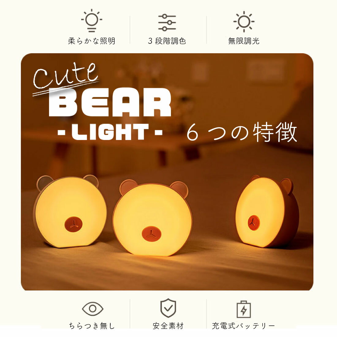 プレゼント ギフト 贈り物 贈物 誕生日 記念日 母の日 父の日 敬老の日 クリスマス バレンタイン ホワイトデー 卒業祝い 成人祝い 就職祝い 合格祝い 入園祝い 入学祝い 進学祝い 退院祝い 結婚祝い 退職祝い 引越祝い 新築祝い 冠婚葬祭 お中元 お見舞い 還暦祝い 長寿祝い お返し様々なシーンで大活躍!玄関 リビング フロア トイレ ダイニング キッチン 寝室 洋室 和室 クローゼット 収納スペース 洗面所 階段 在宅 オフィス 事務 会社 家 マイホーム インテリア ガレージ 車庫 スタイル・特徴熊 ベアー アニマル 動物 韓国 北欧 モダン 調色 調光 電球色 昼白色 温白色 暖色 白色 コードレス 充電式 商品説明熊型デザインがとっても可愛いインテリアライト。