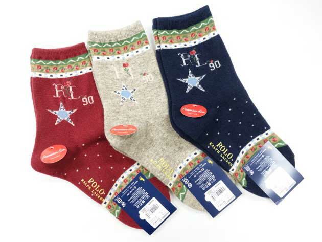 POLO RALPH LAUREN ポロ ラルフローレン レディース ソックス 厚地 ロゴ スター クルーソックス サイズ 22~24cm 素材 毛・ポリエステル ナイロン・ポリウレタン 原産国 日本