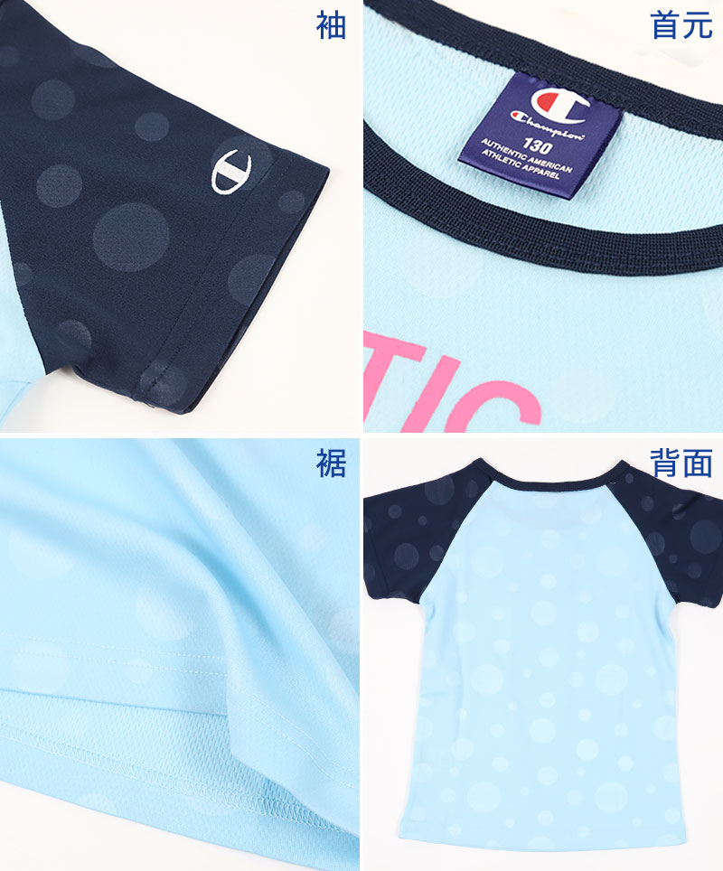 ◆子供チャンピオン 女児セットアップの詳細商品名子供チャンピオン 女児セットアップ対象者ガールズサイズ100cm(トップス)身丈:約40cm/身幅:約29cm/肩幅:約25cm/袖丈:約8cm、(ボトム)胴囲:約45-51cm/股上:約21cm/股下:約12cm110cm(トップス)身丈:約43cm/身幅:約31cm/肩幅:約27cm/袖丈:約9cm、(ボトム)胴囲:約47-53cm/股上:約22cm/股下:約14cm120cm(トップス)身丈:約46cm/身幅:約33cm/肩幅:約29cm/袖丈:約10cm、(ボトム)胴囲:約49-55cm/股上:約23cm/股下:約16cm130cm(トップス)身丈:約49cm/身幅:約35cm/肩幅:約31cm/袖丈:約11cm、(ボトム)胴囲:約51-57cm/股上:約24cm/股下:約18cm140cm(トップス)身丈:約53cm/身幅:約38cm/肩幅:約33cm/袖丈:約12cm、(ボトム)胴囲:約53-59cm/股上:約25cm/股下:約20cm150cm(トップス)身丈:約57cm/身幅:約41cm/肩幅:約35cm/袖丈:約13cm、(ボトム)胴囲:約56-63cm/股上:約26cm/股下:約22cm160cm(トップス)身丈:約61cm/身幅:約44cm/肩幅:約37cm/袖丈:約14cm、(ボトム)胴囲:約58-66cm/股上:約27cm/股下:約24cmカラーA:サックスB:ネイビーC:ライトイエローD:ブラックE:サックスF:ラベンダーG:イエローH:ピンクI:ネイビー素材・加工(トップス)本体:ポリエステル100%、リブ部分:ポリエステル95%/ポリウレタン5%(ボトム)本体:ポリエステル100%やや透け感ありトップス:衿リブバインダー/袖口・裾折り返し二本針ボトム:ウエストゴム入り/スピンドルひも付き/裾折り返し二本針/左右ポケットあり生産国日本企画海外製関連キーワード運動着/スポーツウェア/CJ4406/CJ4407/CJ4239 k-out-bot k-out-t k-room-sumチャンピオン キッズ パジャマ 半袖 女の子 上下◆おすすめのカテゴリ ポリエステルメッシュ素材で汗をかいてもベタつかない!チャンピオン・ガールズ用Tシャツ&ハーフパンツ上下セットです。